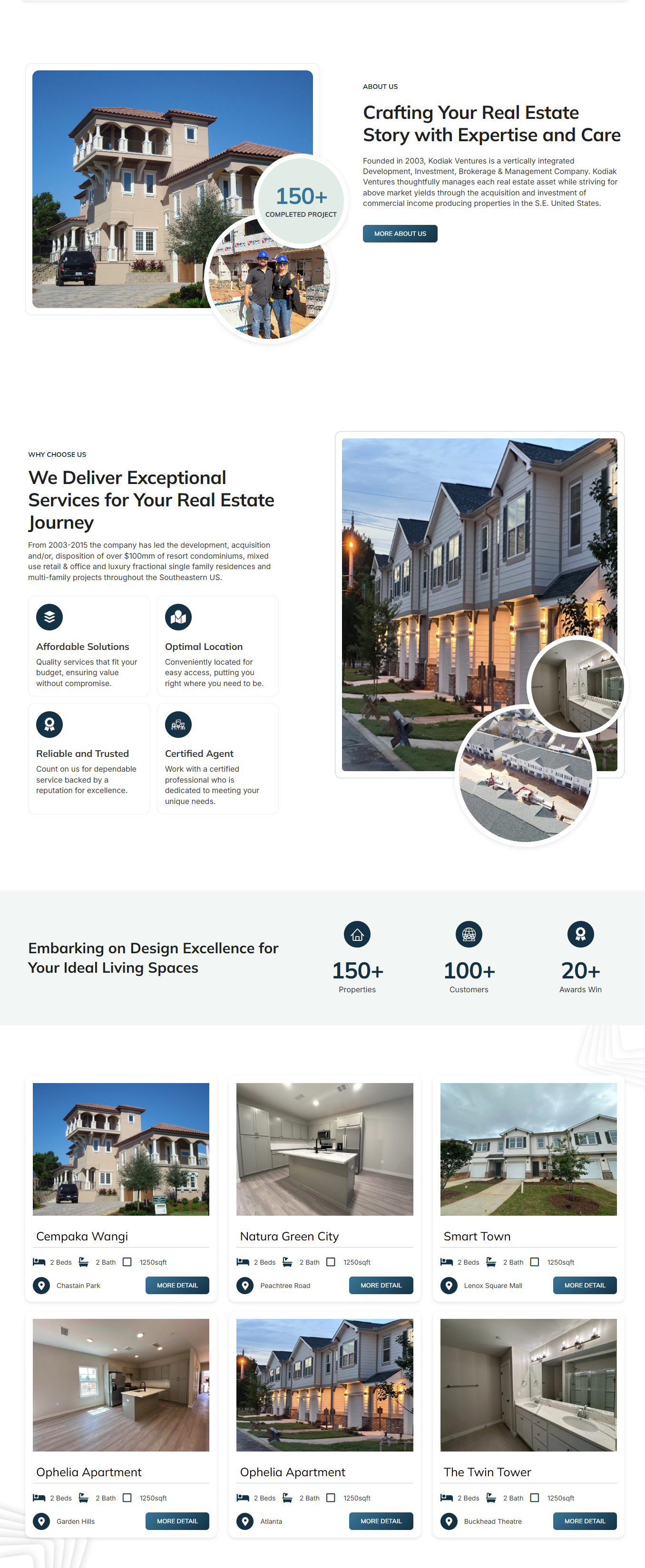 - Award and Recognition Display: The website includes a section dedicated to Kodiak Ventures’ industry recognition, awards, and completed projects, reinforcing their authority in the real estate market.